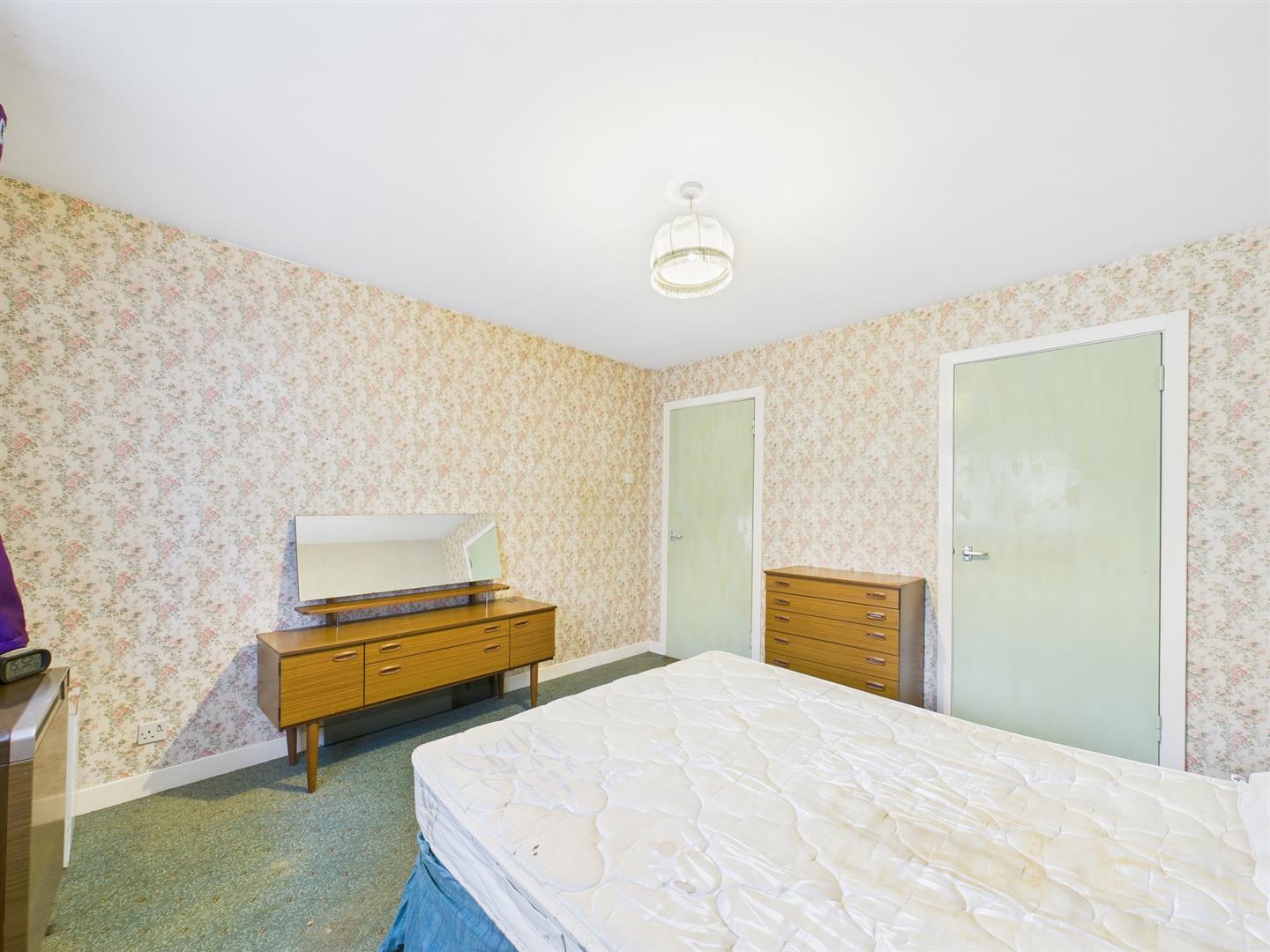 This double bedroom has a large storage cupboard and window to rear.
