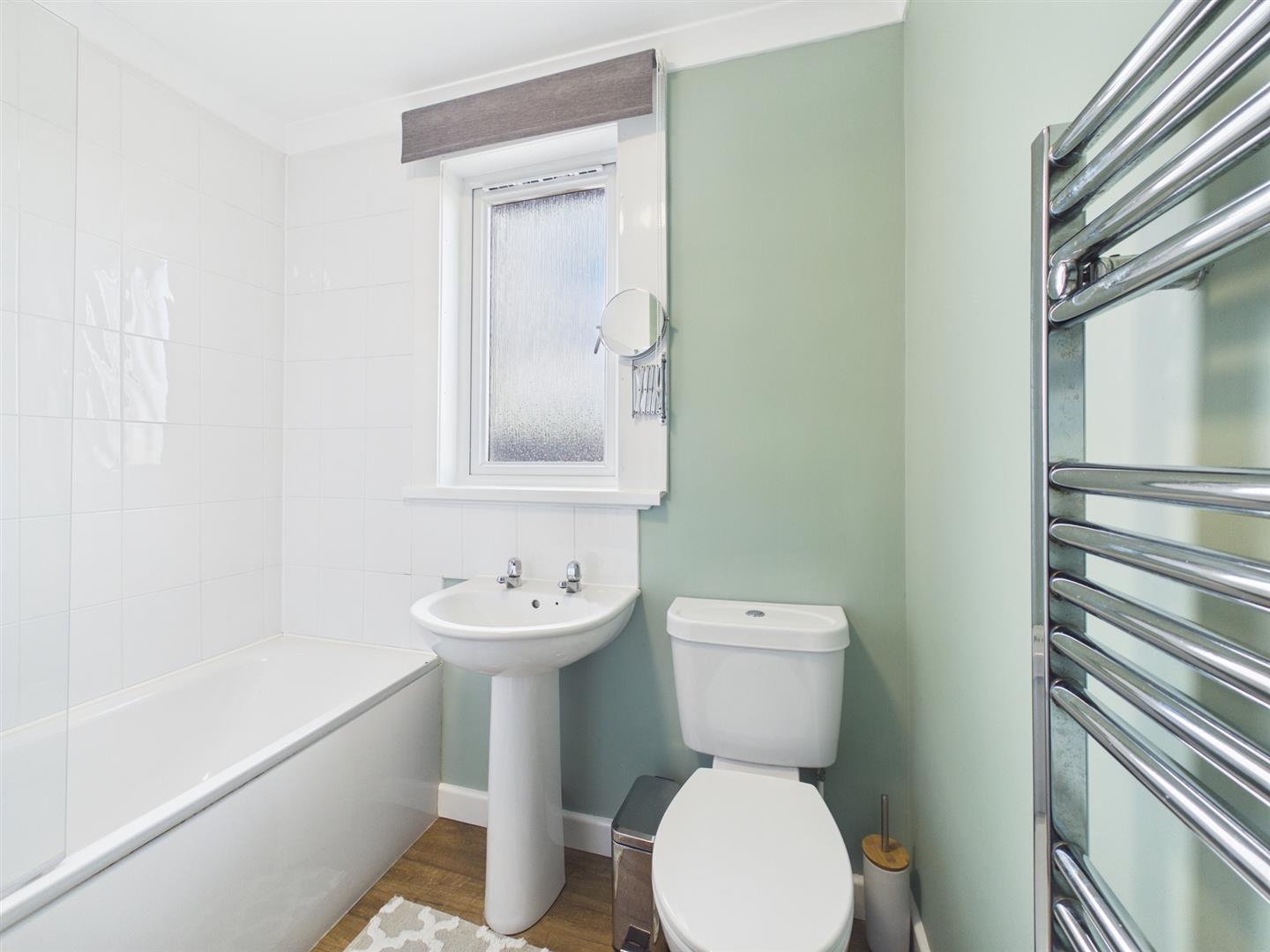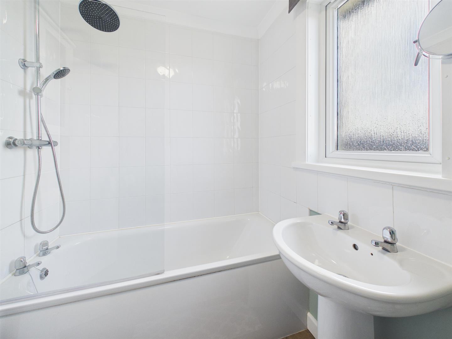the family bathroom comprises wc, wash hand basin and bath with mains shower over. Opaque window to rear.