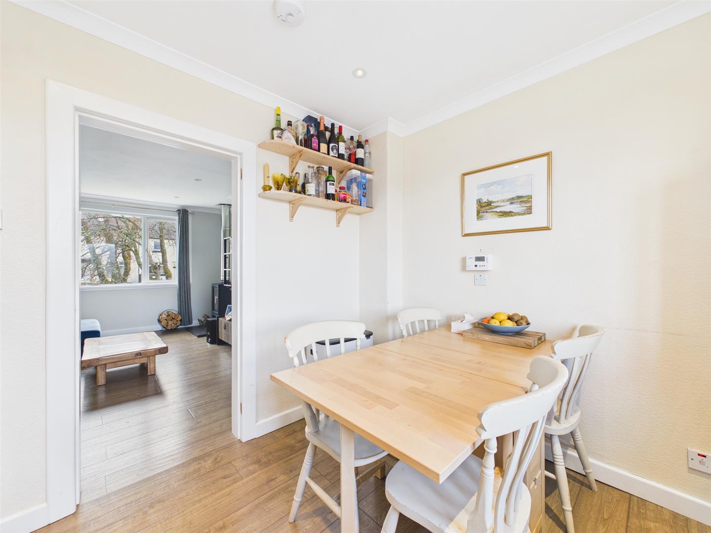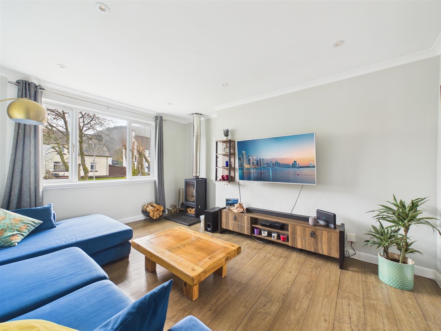 Bright and airy lounge with large picture window to front offering views of Ben Nevis. Wood burner and door to kitchen.