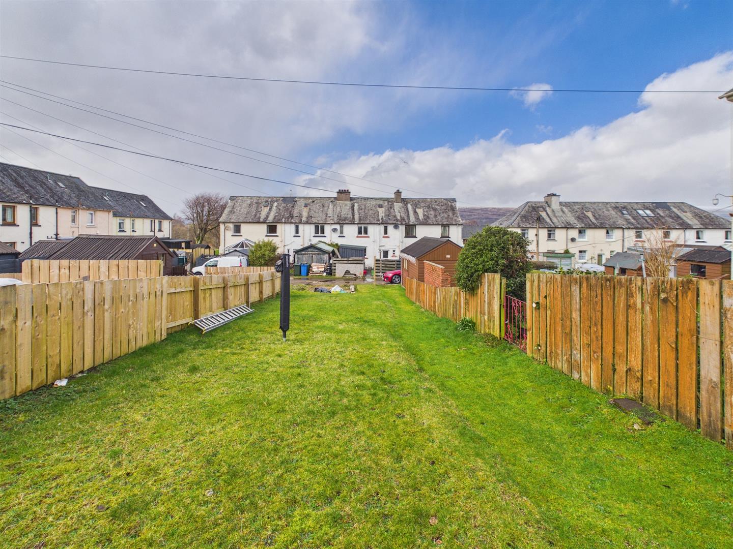 The large garden is laid to lawn. with space for additional off street parking.