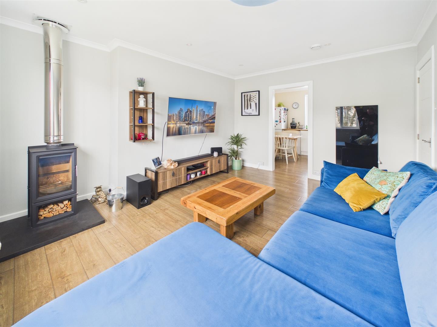 Provides access to lounge, kitchen/dining room, bathroom and three bedrooms. Large storage cupboard. Hatch to floored attic, offering excellent additional storage space.