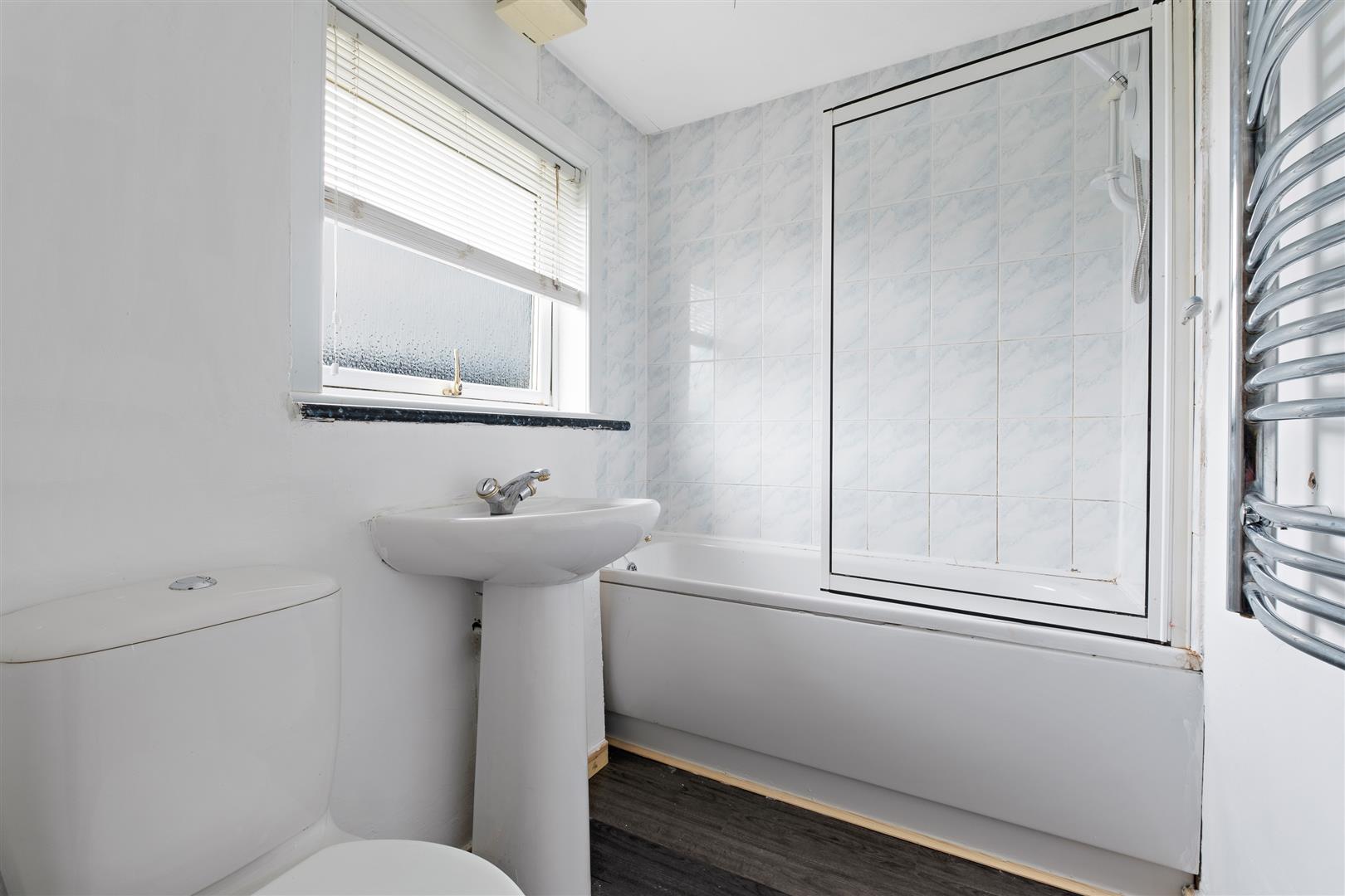 The family bathroom includes wc, wash hand basin and bath with electric shower over. Opaque window to rear.