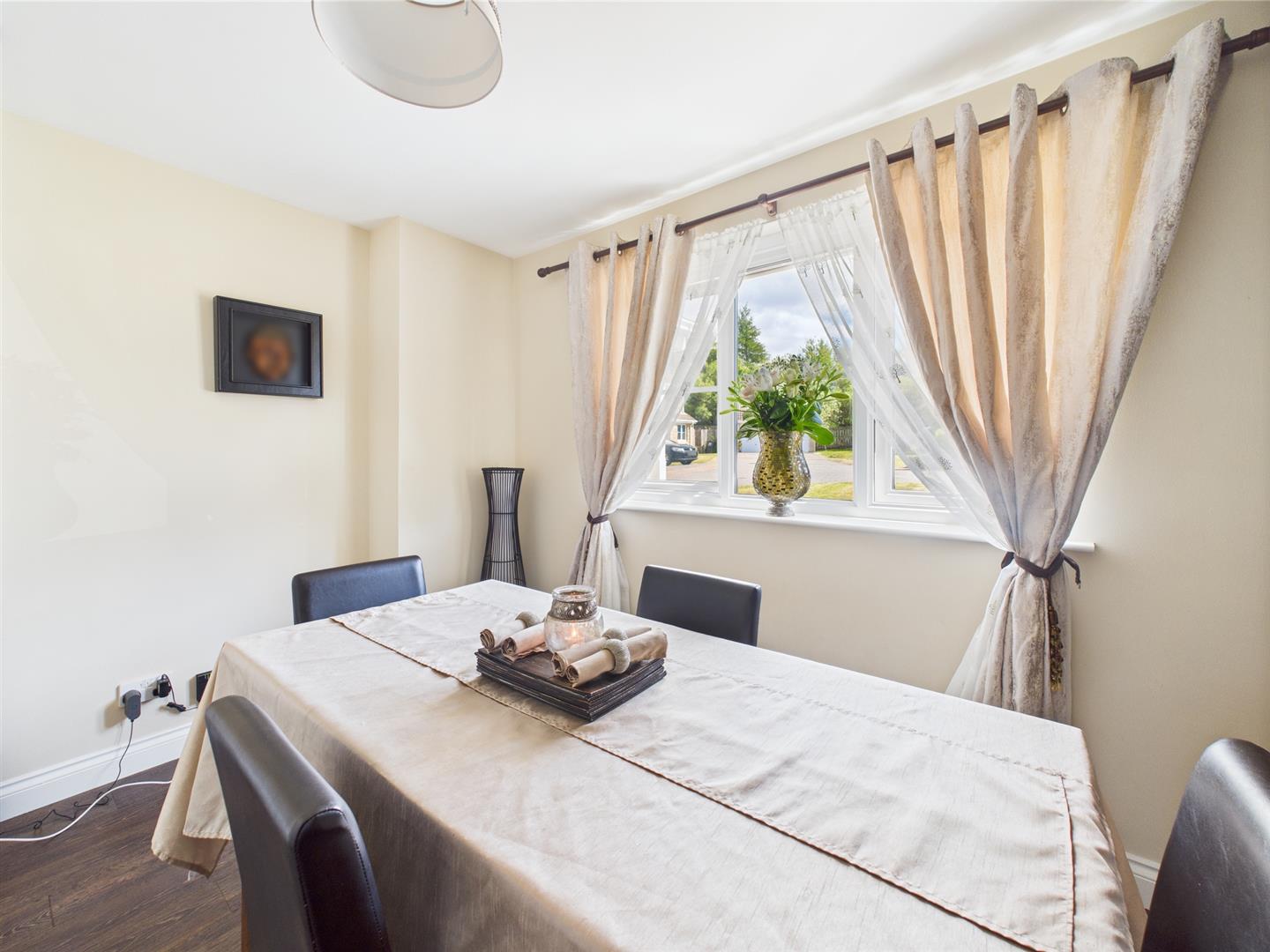 The attractive formal dining room has a window overlooking the front garden.