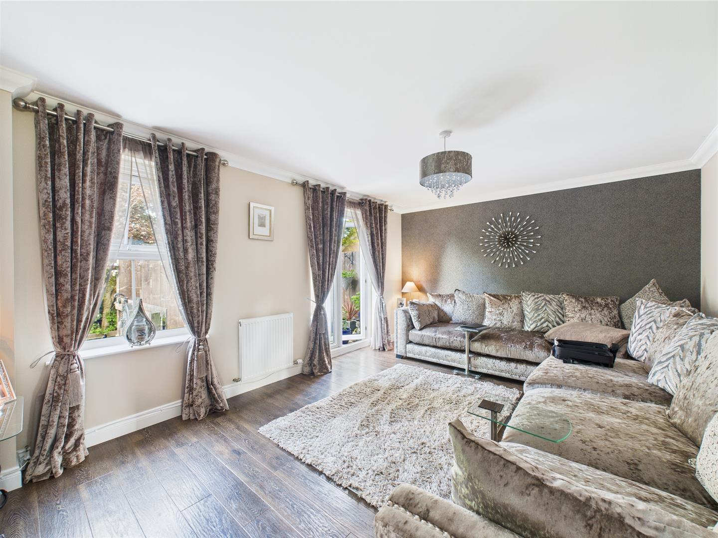 This bright and welcoming lounge has patio doors leading to the rear garden.