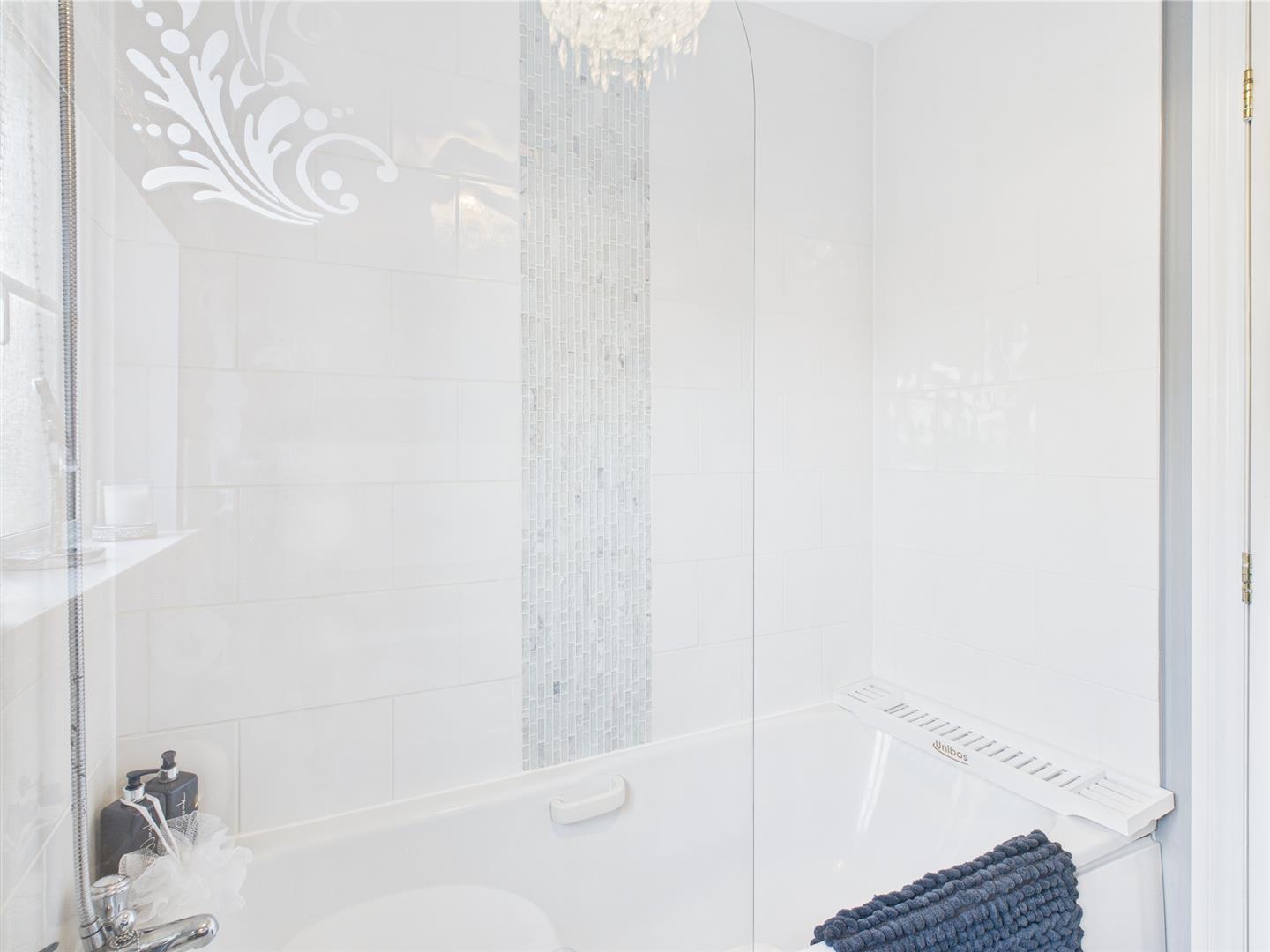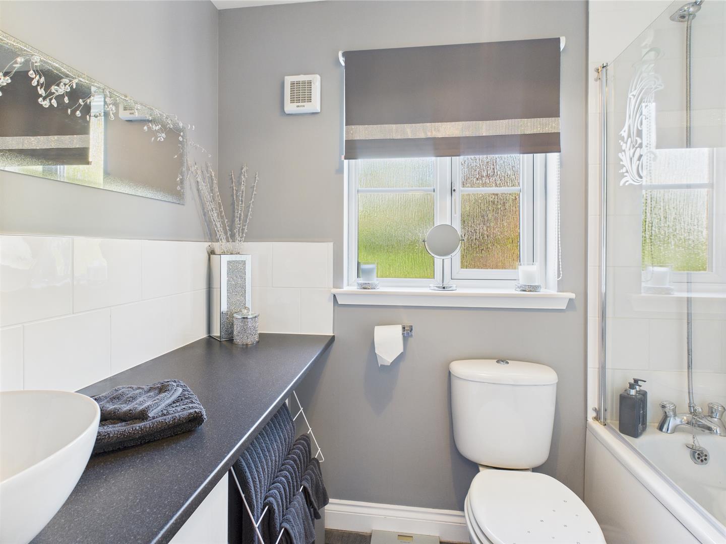 The family bathroom includes wc, wash hand basin and bath with mains shower hose from taps.