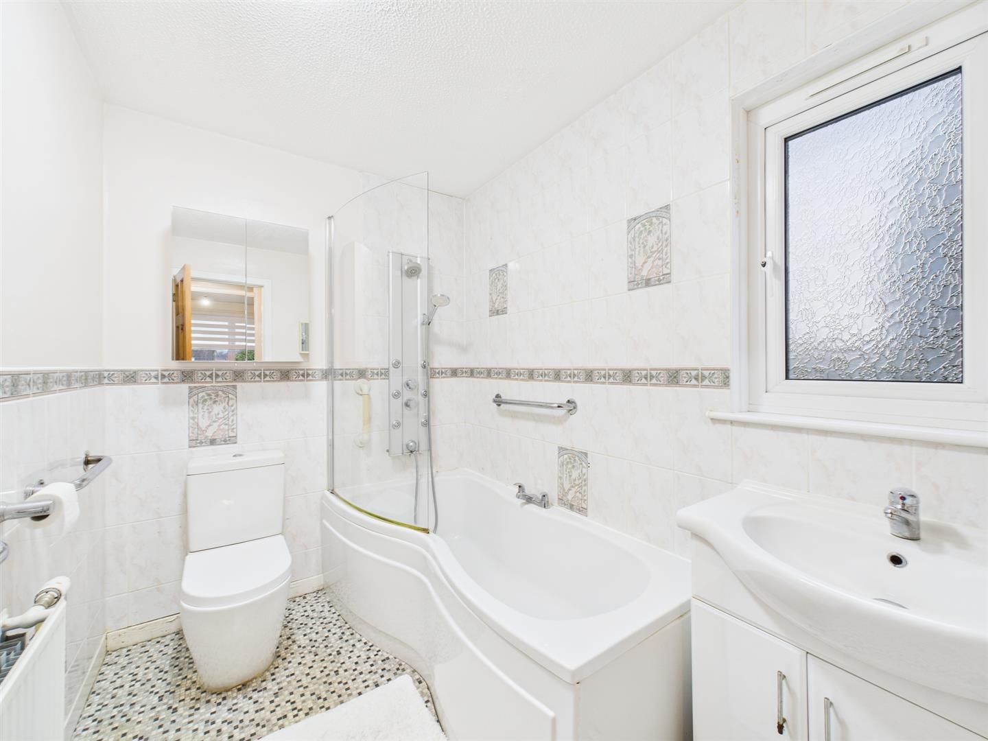 The immaculate bathroom includes wc, wash hand basin and bath with quality shower unit with showerhead and body jets.