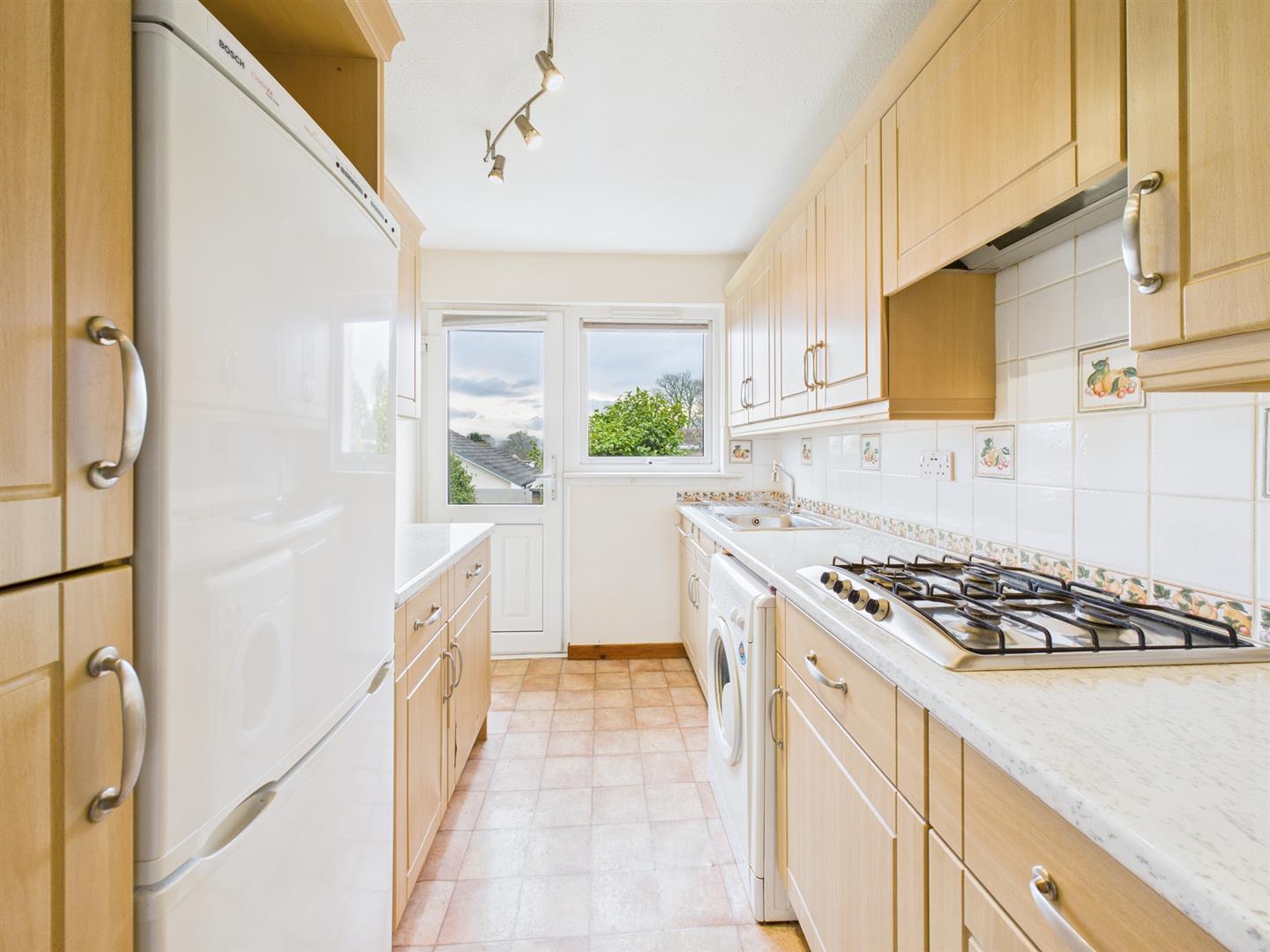 The well appointed kitchen has a good selection of wall and base units with contrasting worktops. Gas hob and wall mounted electric oven. External door to rear garden.