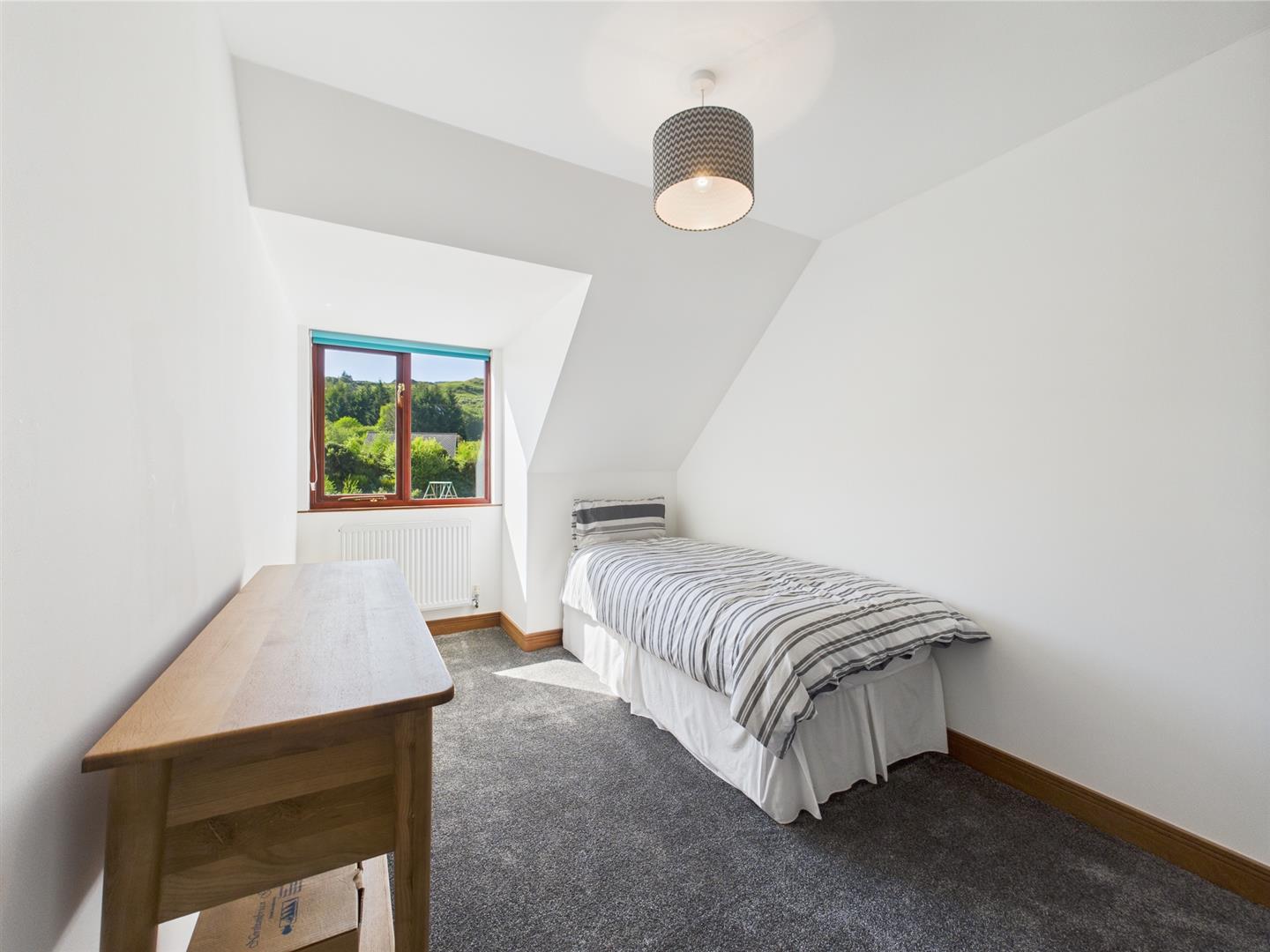 Tucked quietly to the rear, this second upstairs bedroom is a peaceful retreat with elevated garden views. The room makes excellent use of space beneath the sloped ceiling, comfortably accommodating a single or small double bed alongside desk or storage furniture. It’s an ideal solution for guests, a child’s room, or a home office—supported by the adjacent shower room for added convenience.