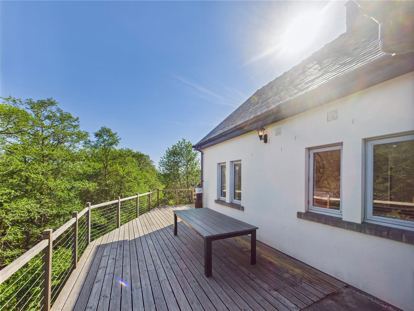 Accessed directly from the second living room, this sun-drenched terrace offers a private outdoor retreat with peaceful views across mature woodland, sounds of the nearby stream and the nearby standing stone — a silent sentinel in the landscape that adds a quietly powerful presence to the outlook. A timber deck and balustrade form a seamless extension of the living space, perfect for morning coffee, al fresco dining, or unwinding as the sun dips behind the trees. Sheltered by the home’s roofline, the terrace invites use throughout the seasons in this elevated, tranquil setting.
