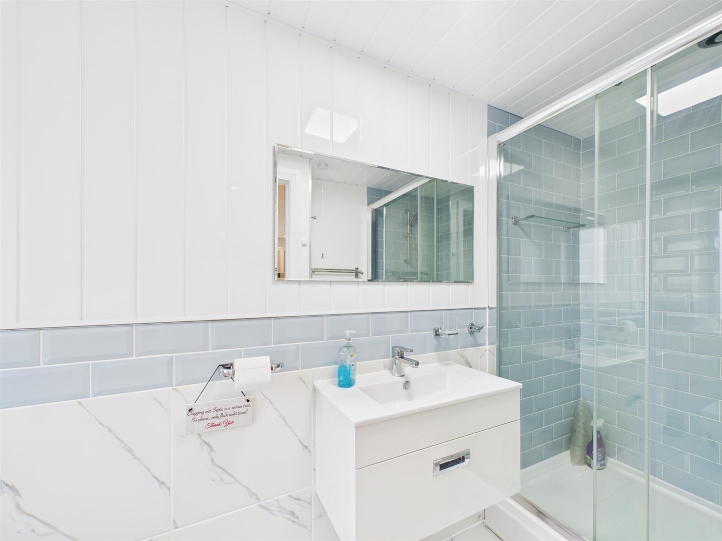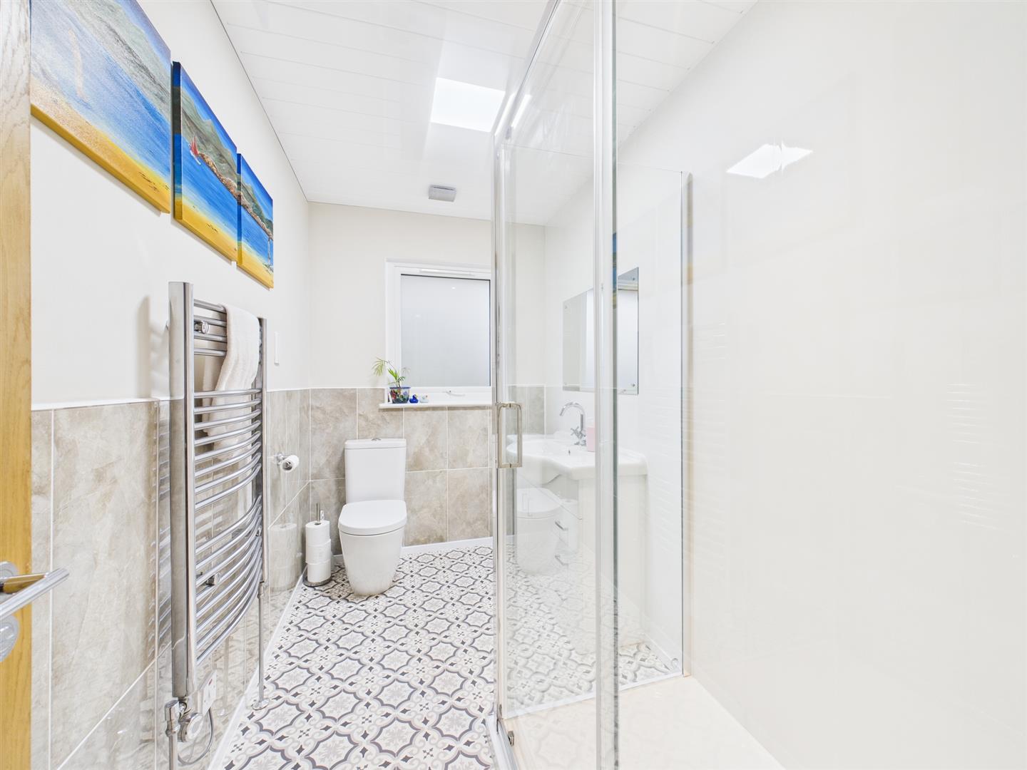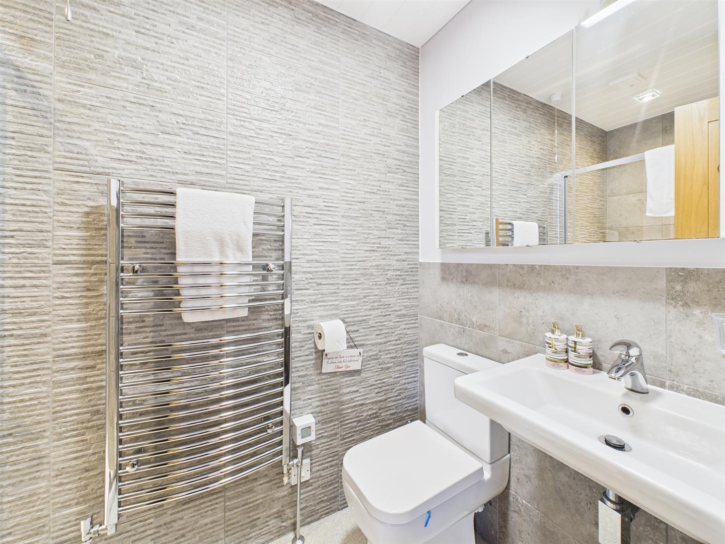The shower room includes wc, wash hand basin, heated towel rail and shower enclosure with mains shower. Opaque window to rear.