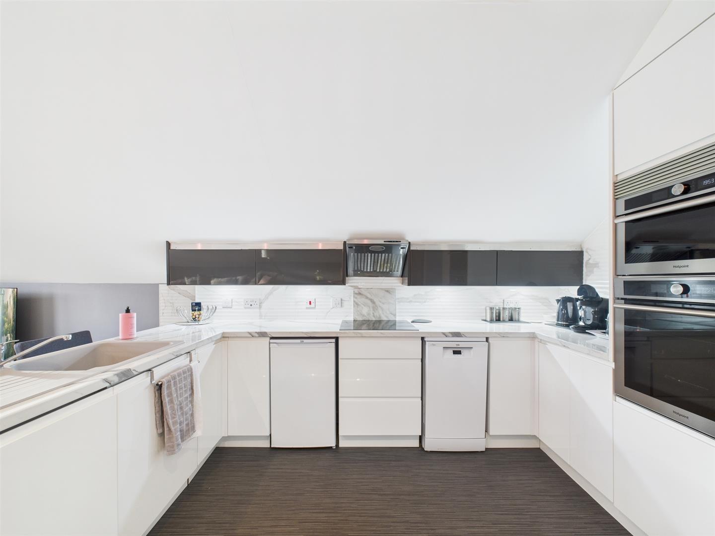 The Annexe kitchen has a good selection of base units in gloss white with electric hob and wall mounted double oven.