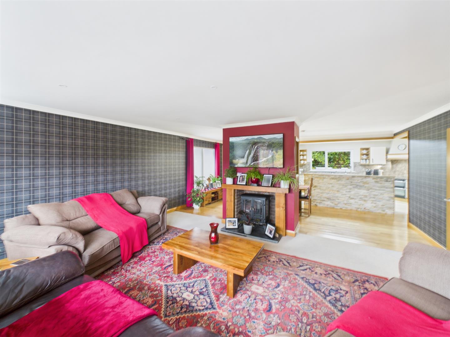 The bright and welcoming lounge has a large window to front with outstanding mountain views and a stone fireplace as it's focal point. The lounge is open plan to the dining area and kitchen.