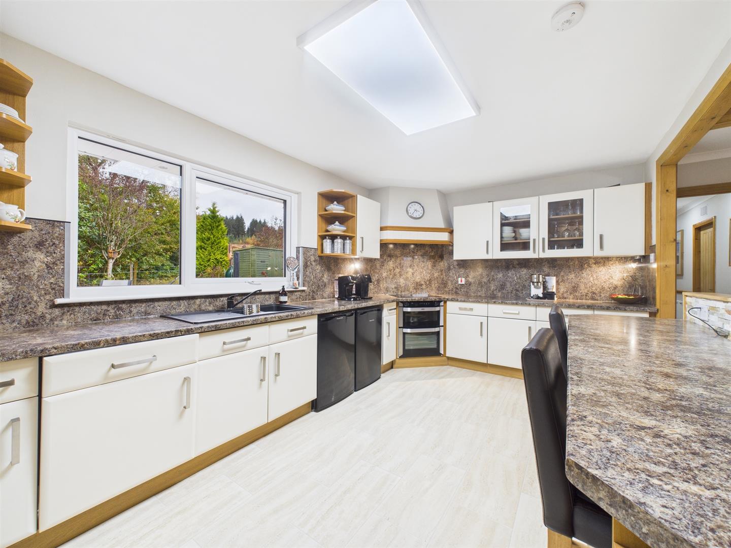 The modern and stylish kitchen has an excellent selection of wall and base units with contrasting worktops. Integral electric hob, double oven, extractor hood and dishwasher. Window overlooking the rear garden and door to utility room.